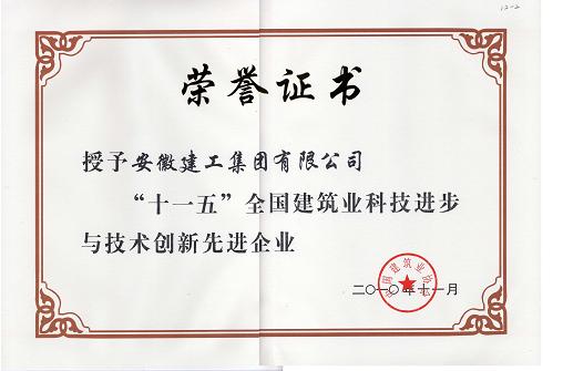 2010年11月16日,中國施工企業(yè)管理協(xié)會科技發(fā)展論壇暨頒獎會在云南昆明隆重召開,中國施工企業(yè)管理協(xié)會會長曹玉書做了題為《用科技支撐工程建設行業(yè)經濟發(fā)展方式的轉變》的重要講話。會議表彰了2009年度技術創(chuàng)新成果、技術創(chuàng)新先進企業(yè)、技術創(chuàng)新先進個人。安徽建工集團有限公司榮獲“中國施工企業(yè)科學技術獎技術創(chuàng)新先進企業(yè)”,集團公司副總經理、總工程師戴良軍榮獲“中國施工企業(yè)科學技術獎技術創(chuàng)新先進個人”,安徽公路橋梁工程公司申報的“單雙臂鋼圍堰施工技術”榮獲“2009年度中國施工企業(yè)科學技術獎技術創(chuàng)新成果二等獎”。