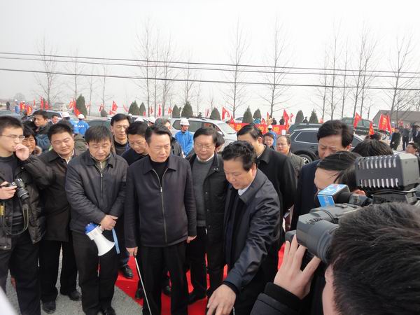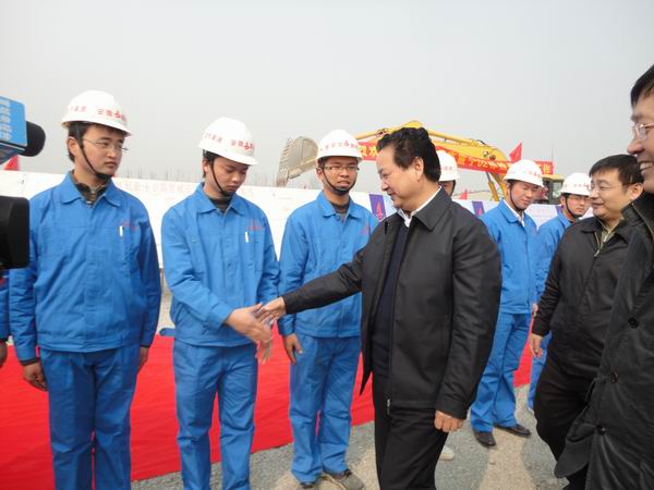 3日下午,黃省長蒞臨寧績高速07標視察。在該項目現場,黃省長與汪總進行了親切地交談。黃省長高度評價了公司近年來的發展歷程,高興地說,“以前安徽路橋還很困難,發不出工資;今天看到了安徽路橋足跡遍布十二省市,規模大,效益好,我由衷地感到欣慰。”臨上車前,黃省長緊握汪總的手語重心長地鼓勵安徽路橋做大做強,為推動安徽公路事業發展承擔更多的責任。