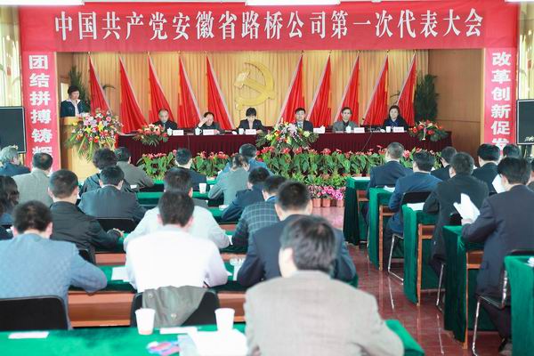 團結奮斗共謀發展,繼往開來續寫新篇。備受公司全體黨員、職工矚目和期待的中共安徽省公路橋梁工程公司第一次代表大會于4月13日在合肥隆重召開。安徽建工集團黨委書記張海平、黨委工作部主任吳曉伍、紀委副書記高全秀、人力資源部經理胡建英等領導蒞臨大會指導。安徽省路橋工程集團有限責任公司、安徽省路港工程有限責任公司、安徽省交通航務工程有限公司等兄弟單位黨委向大會發來賀信、賀電。