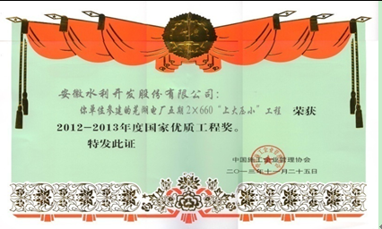 蕪湖電廠五期2×660“上大壓小”工程項(xiàng)目部--國(guó)家優(yōu)質(zhì)工程獎(jiǎng)