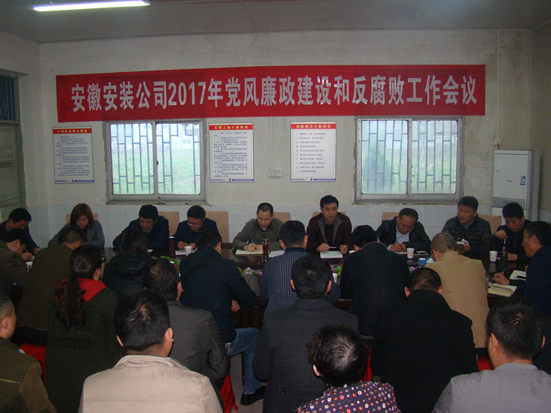 3月30日上午,安徽安裝公司黨委在安徽省白湖監(jiān)獄管理分局罪犯醫(yī)療綜合樓工程項(xiàng)目部召開2017年黨風(fēng)廉政建設(shè)和反腐敗工作會(huì)議,公司領(lǐng)導(dǎo)班子成員、中層以上管理人員、部分項(xiàng)目經(jīng)理及白湖監(jiān)獄罪犯綜合樓項(xiàng)目管理干部50多人參加了會(huì)議。會(huì)議由公司紀(jì)委書記、工會(huì)主席李寬旭主持。
