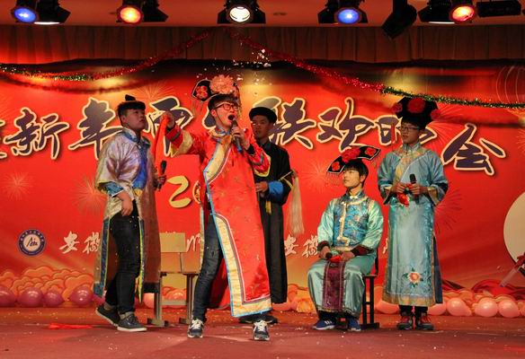 12月30日晚,安徽建工技師學(xué)院2016年迎新年師生聯(lián)歡晚會在學(xué)校禮堂隆重舉行。校長張衛(wèi)東、黨委書記錢森林、安徽建工建筑材料有限公司副總經(jīng)理徐友修、工會主席韓振遠,安徽建工技師學(xué)院副校長任建設(shè)、周元清、呂良玉,紀委書記、工會主席龔維加與各處室、系部負責(zé)同志和廣大師生員工、部分離退休老同志參加了聯(lián)歡。