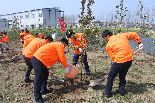 春回大地萬物蘇,植樹添綠正當時。為踐行環保理念,項目部團支部于3月21日組織了植樹活動。大家統一著裝,佩戴志愿者徽章,高揚“建工青年志愿者服務隊”隊旗,在拌和站及項目部附近的空地上種植了近500棵樹苗。活動中,志愿者們積極行動,干得熱火朝天,大家三五人一組,揮鍬鏟土,扶苗填坑,踏土夯苗,認真完成每一道工序。看著一株株“青年志愿樹”成功栽種,大家都露出了會心的笑容,項目部也在喜添新綠后變得生機盎然。
