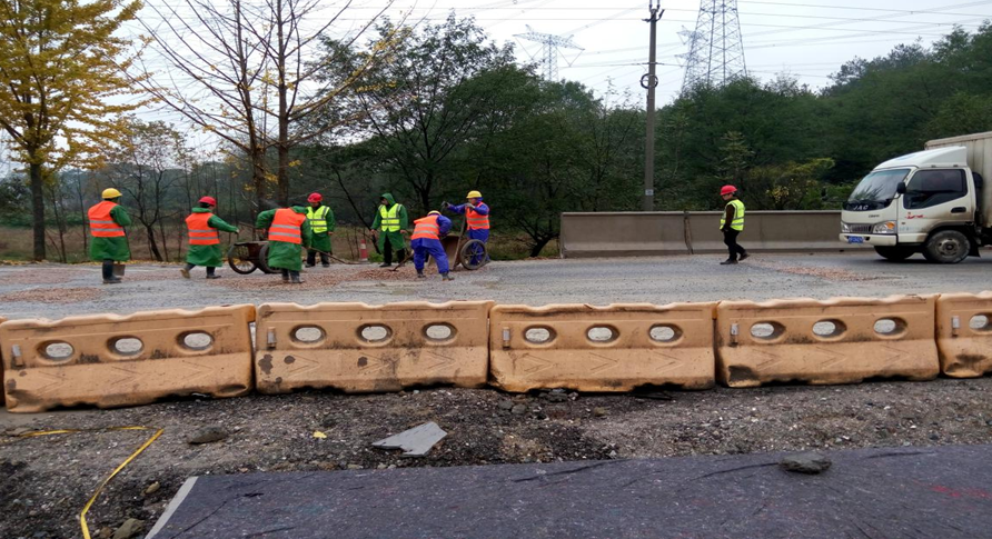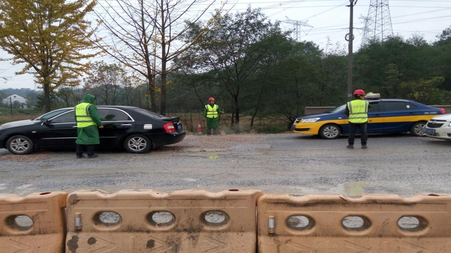 2016年11月22日下午4時許,由于連續降雨,加上G318重載車輛較多,導致臨時通行段東蓉橋兩端路基出現嚴重坑洼,影響道路通行速度及安全。為此,安徽路港G318改建工程項目經理部迅速響應,緊急組織青年突擊隊員共計16人冒雨前去搶修。