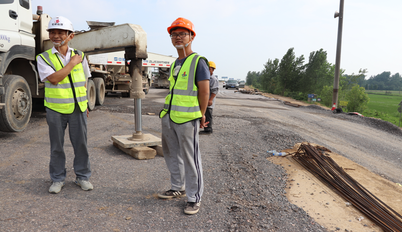 針對工程技術難度大、試驗項目多的特點,試驗室主任湯云飛多方查閱資料,帶領試驗人員增加試驗檢測頻率,按照“事前預測、事中控制、事后評估”的方法,嚴把質量關。工期緊張時,他幾乎整天都在拌合站和攤鋪現場,試配配合比,采集各項數據, 分析、調整、再試驗,每天只能睡上4、5個小時。