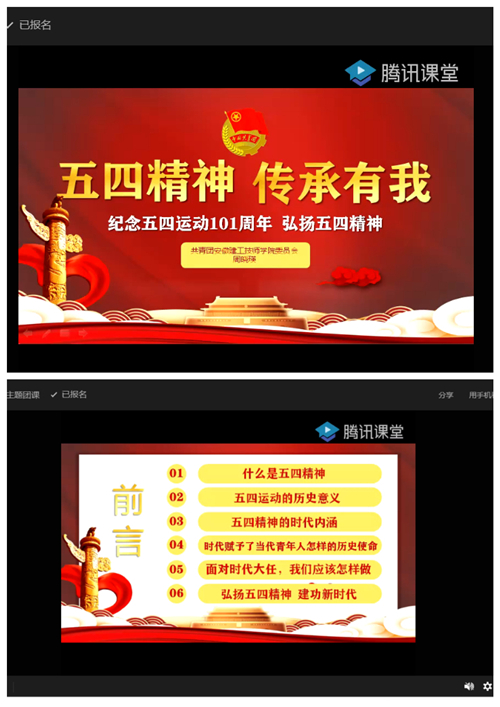 2020年是五四運動101周年。隨著疫情防控進入新的時期,安徽建工技師學院團委利用特殊的線上“云團課”方式與團員們一起用全新的方式紀念五四運動,向青春致敬!本次“云團課”以“五四精神,傳承有我”為主題,由學院團委書記周曉瑛主持,全院71名學生團干部參加學習。