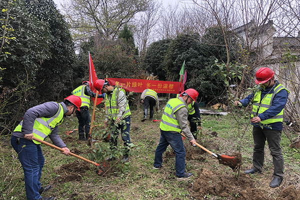 市政分公司團支部組織團員青年在淝河鎮席井村開展植樹活動。放眼席井村,春山可望,草木萌發,大家或兩人一組、或三人一隊,挖基坑、拌肥料、扶苗木等環節緊密銜接。一番辛勤的勞作后,20余株香樟樹苗在此扎根。