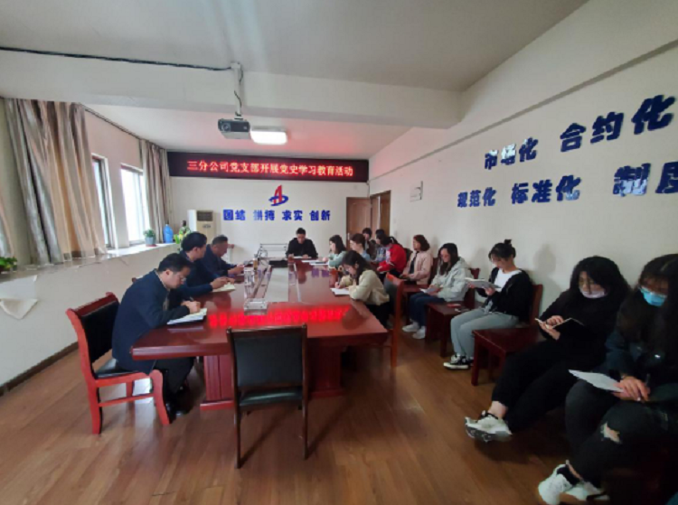 三分公司黨支部開展黨史學(xué)習(xí)教育活動(dòng),分公司機(jī)關(guān)全體人員參加,活動(dòng)由支部書記陳習(xí)武主持。首先,陳習(xí)武帶領(lǐng)大家學(xué)習(xí)了二建黨發(fā)【2021】13號(hào)文《安徽二建公司黨委關(guān)于開展黨史學(xué)習(xí)教育的工作方案》,并就分公司黨支部的黨史學(xué)習(xí)教育活動(dòng)做了詳細(xì)安排部署,要求全體黨員干部把思想和行動(dòng)統(tǒng)一到集團(tuán)、公司黨委的決策部署上來(lái),高標(biāo)準(zhǔn)、高質(zhì)量完成黨史學(xué)習(xí)教育各項(xiàng)任務(wù),努力做到學(xué)史明理、學(xué)史增信、學(xué)史崇德、學(xué)史力行,以優(yōu)異成績(jī)迎接建黨100周年。隨后,陳習(xí)武帶領(lǐng)大家上了一堂生動(dòng)的黨史課。“從上海石庫(kù)門到嘉興南湖,一艘小小紅船承載著人民的重托、民族的希望,越過(guò)急流險(xiǎn)灘,穿過(guò)驚濤駭浪,成為領(lǐng)航中國(guó)行穩(wěn)致遠(yuǎn)的巍巍巨輪。”。通過(guò)視頻和講解相結(jié)合,為大家敘述了從中國(guó)共產(chǎn)黨成立到建立新中國(guó),28年間,黨召開了一次次重要會(huì)議。這些會(huì)議作出的決策,指引了中國(guó)革命的方向,推動(dòng)了歷史進(jìn)程,具有里程碑意義。大家紛紛表示,將從黨史中汲取智慧和力量,堅(jiān)定信仰信念,進(jìn)一步提高黨性修養(yǎng),不忘初心,以實(shí)際行動(dòng)發(fā)揮好黨員干部的模范帶頭作用,積極投入到干事創(chuàng)業(yè)中去,為分公司的發(fā)展添磚加瓦。