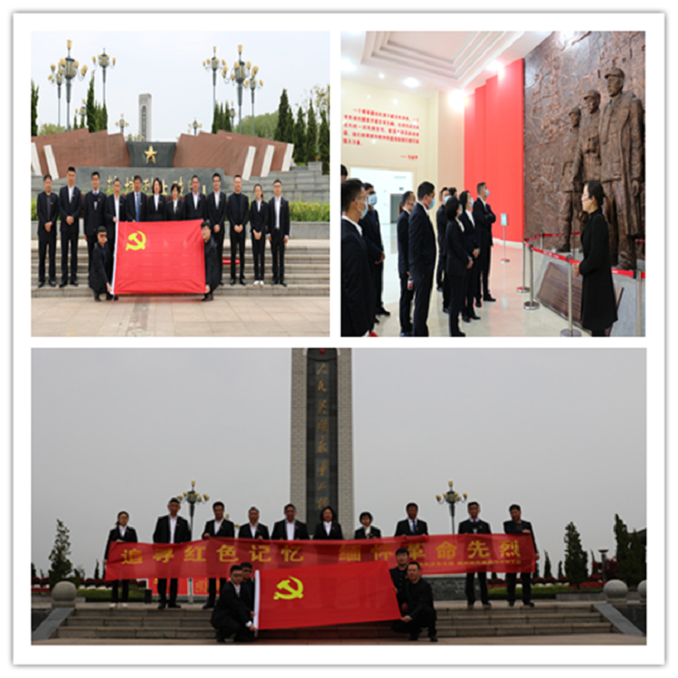為深入學習貫徹落實習近平總書記在黨史學習教育動員大會上的重要講話精神,4月14日上午,機關黨支部和滁州時代樾府項目黨支部聯合組織黨員、積極分子赴定遠藕塘烈士陵園緬懷革命先烈,傳承紅色精神 。在藕塘革命紀念館,大家參觀展館內的歷史圖片、資料和抗戰文物,認真聆聽講解員對英雄事跡的詳細講解,重溫了當年的革命歷史故事,全體黨員在黨旗下宣誓。 在莊嚴的革命烈士紀念碑前,全體黨員向犧牲的革命烈士三鞠躬并敬獻花籃,表達了對革命烈士的深切追思與緬懷。