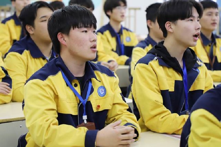 “紅星閃閃放光彩,紅星燦燦暖胸懷,紅星是咱工農(nóng)的心,黨的光輝照萬代!”……每到晚自習時間,安徽建工技師學院汽車與機電技術(shù)系各班的教室中就會傳來嘹亮的歌聲。