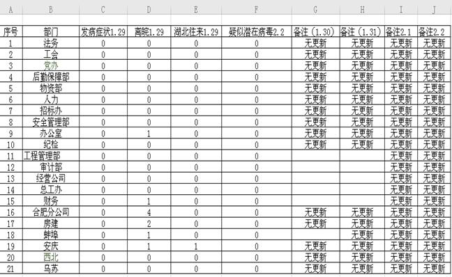 四是日報(bào)制度。自1月26日起實(shí)行日報(bào)制度,各分公司、各部門認(rèn)真做好登記,確保信息及時準(zhǔn)確,形成春節(jié)休假期間上下聯(lián)動、聯(lián)防聯(lián)控的疫情防控工作格局。