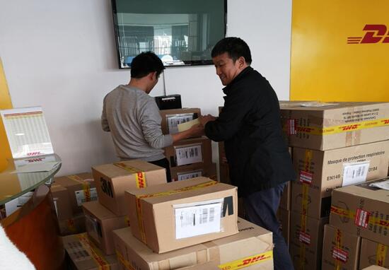 由于采購的防疫物資數量大,而又恰逢周末,貨運公司人手不足。為爭分奪秒,縮短物資發運時間,采購小組主動前往DHL航空貨運公司,協助貨運公司工作人員對防疫物資進行分裝、打包、貼簽。然而難題又出現了,按照貨運公司規定,大宗物資必須分批次進行報關發貨,這樣好不容易采購到的防疫物資就不能全部在第一時間內抵達國內。經過討論和咨詢,并與貨運公司反復協商,駐阿經理部決定以公司名義辦理報關,并迅速整理遞交了報關資料,全力協助DHL貨運公司發運防疫物資,最大限度確保防疫物資盡快運抵國內。