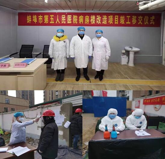 疫情就是命令,防控就是責任。2月2日至12日,李廣松副院長帶領青年突擊隊成員宋貝妮、錢梅兩位同志,堅守在疫情防控一線為建設蚌埠“小湯山”(蚌埠五院應急工程)的施工人員及管理人員測量體溫、提供防護物資,并積極進行疫情防護與宣傳工作。李廣松說:“作為一名共產黨員,疫情防控工作關系到每一個人的身心健康和生命安全,我們責無旁貸,堅決不能退縮。”