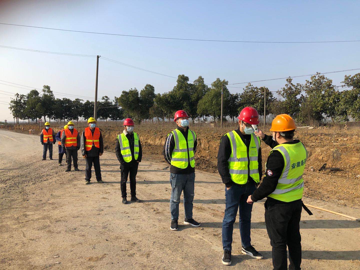 3月6日一早,項目管理人員就來到現場,給道排班組負責攤鋪瀝青的專業施工隊伍進行體溫檢測,并進行安全技術及防疫教育交底,完成15000㎡AC-25C粗粒式瀝青混凝土攤鋪工作。