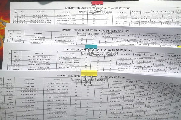 項(xiàng)目部充分意識到疫情防控工作的重要性與緊迫性,提前聯(lián)系班組人員,要求返工人員提供社區(qū)或村鎮(zhèn)健康證明、近一個(gè)月出行記錄、健康申報(bào)表、承諾書、疫情防控卡以及安康碼等相關(guān)資料,一人一檔進(jìn)行備案。為解決疫情期間職工就餐難題,降低傳染風(fēng)險(xiǎn),項(xiàng)目食堂采取分餐制,食堂設(shè)置洗手消毒區(qū),配備一次性餐盒專用收儲垃圾桶。