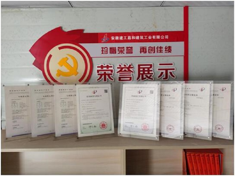 嘉和建筑產業園高度重視技術研發實力提升,已承接了多個相關課題的研發,并取得階段性成果。其中《裝配式產業助力蚌埠市建筑業綠色轉型升級研究》課題獲得由蚌埠市“社會科學規劃政府資助項目”立項,成為該市智庫建設和社會科學規劃立項唯一由生產企業申報成功的建筑行業領域課題。先后取得一種用于PC構件養護窯螺栓預埋的裝配式定位裝置、裝配式定位器(PC構件養護窯螺栓預埋用)、通風外墻、一種建筑內隔墻、鋼結構復合樓板、一種輕鋼結構房屋墻壁、樓板結構、一種輕鋼結構建筑屋面等多項發明專利權,7項專利正在申報中。