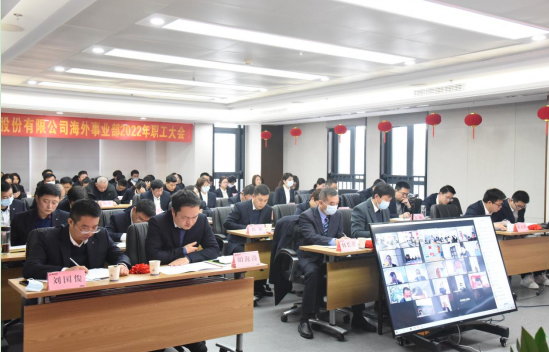趙時運介紹了集團2021年總體發展情況及取得的成就,并對海外業務發展提出三點要求:一是厚植敢為人先的文化基因,堅定海外事業信心決心。要充分利用海外業務四十年發展所沉淀的寶貴經驗優勢,探索實現海外業務高質量發展;要堅持穩健的海外業務發展基調,堅定走好符合海外業務實際的發展道路,努力開拓海外業務新局面;要搶抓我國堅定不移擴大對外開放,助力全球經濟復蘇,深入推進“一帶一路”合作倡議所帶來的海外業務發展機遇。二是保持星火燎原的奮進態勢,實現海外業務提質增效。要構建高質量的“雙循環”格局,聚焦優勢市場,深耕重點市場,優化“3+2”市場布局,積極拓展省外市場,力爭在新業態方面有所突破;要構建高效益的“雙驅動”格局,立足施工主業,探索大宗建材、能源、商品貿易領域,結合境外市場國資源優勢,不斷豐富國際貿易產品類型,真正打響國際貿易品牌;要構建高精準的差異化格局,立足集團整體布局和自身資源優勢實現海外業務差異化發展,爭做安徽省外經企業的一面旗幟。三是發揮紅色引擎的引領作用,打造海外特色黨建品牌。要緊扣迎接、宣傳、貫徹黨的二十大這條主線,持續強化政治引領,堅決做到“兩個維護”,牢牢把握意識形態工作領導權,講好中國故事、建工故事與海外故事,通過特色黨建育人才、促發展,推動黨建與生產經營深度融合;要更加突顯實干擔當,進一步改作風、辦實事、優環境,迅速把思想和行動統一到集團二屆二次職代會和本次會議部署上來,以實施“四大行動”為抓手,強化“一日無為,三日難安”的事業心和責任心,全力完成年度目標任務;要始終堅持以人為本,把抓好境外疫情防控作為首要任務,嚴格落實疫情防控各項工作要求,織密境外疫情防控防護網,進一步加強對境外職工的關心支持,全力保證境外職工健康安全。