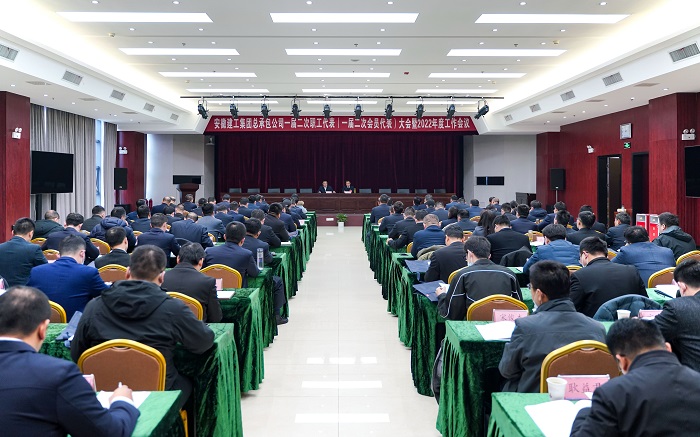 人勤春來早,奮進(jìn)正當(dāng)時!壬寅虎年春節(jié)假期剛過,2月12日至13日周末,安建總承包一屆二次職工代表(一屆二次會員代表)大會暨2022年度工作會議在安建大廈勝利召開,學(xué)習(xí)傳達(dá)集團(tuán)二屆二次職代會暨2022年工作會議精神,回顧總結(jié)2021年工作,謀劃部署2022年工作。建工股份黨委副書記、總經(jīng)理、董事李有貴出席并講話,集團(tuán)黨委工作部部長王詩旵率考核組到會開展公司領(lǐng)導(dǎo)班子及成員2021年度綜合考核以及“一報告兩評議”民主測評工作。公司領(lǐng)導(dǎo)張沖、王成民、高立久、陳道兵、徐友修、谷建偉、李登祥、王慶松、副督察員孫有勇、總助阮明、余新友參會,九個政企合資公司政府股東方派駐的十多名經(jīng)理層人員作為特邀代表參會。大會在奏唱《安徽建工之歌》中開幕。
