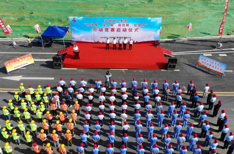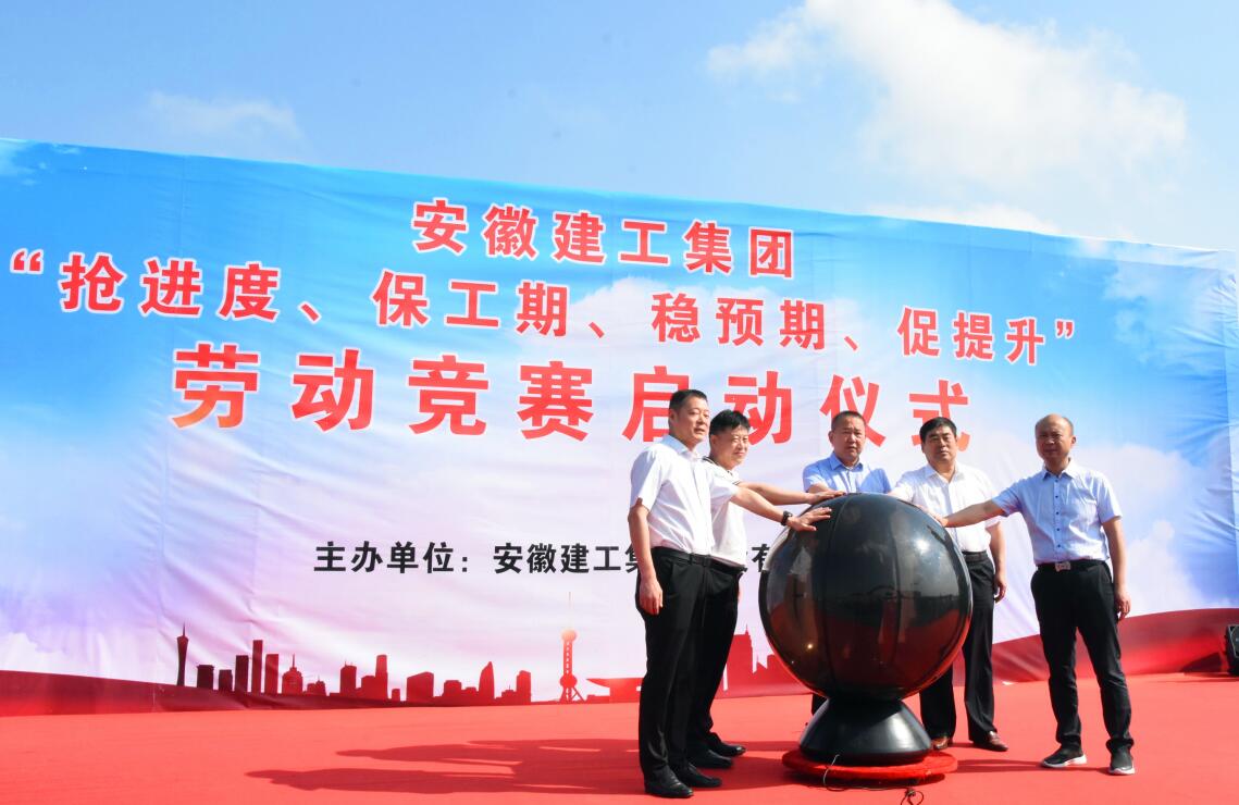 啟動儀式最后,蒙城縣主要領導和集團公司有關領導共同按下啟動球,并向參賽單位授旗,標志著安徽建工集團“搶進度、保工期、穩預期、促提升”勞動競賽正式啟動。
