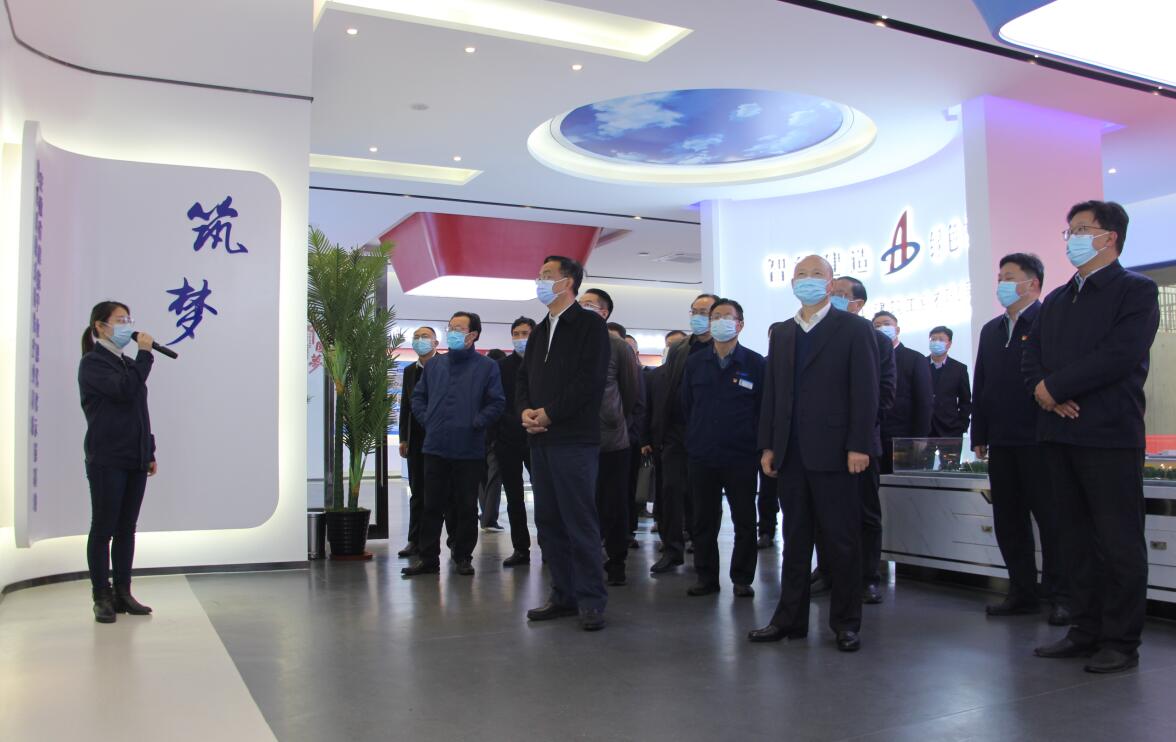 項(xiàng)小龍一行首先參觀了產(chǎn)業(yè)化生產(chǎn)車間,詳細(xì)了解了裝配式建筑固定模臺(tái)生產(chǎn)線、部品部件、軌道交通管片生產(chǎn)流程。在建筑工業(yè)公司綠色建造展廳,通過(guò)公司自行研發(fā)的Smart-PC智能化工廠大數(shù)據(jù)電子大屏,重點(diǎn)考察了企業(yè)智能化生產(chǎn)情況,詳細(xì)了解了工廠智能系統(tǒng)模塊集成、自動(dòng)化流水線生產(chǎn)以及先進(jìn)的裝配構(gòu)件生產(chǎn)設(shè)備等,并通過(guò)智能化工廠大數(shù)據(jù)電子看板,實(shí)時(shí)了解企業(yè)部品部件生產(chǎn)相關(guān)數(shù)據(jù)采集情況。