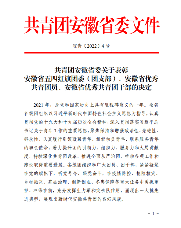 “安徽省優秀共青團員”是共青團安徽省委授予省內團員的最高榮譽,主要的目的是通過表彰在各個領域涌現出的先進典型,激勵廣大團組織和團員,團干部比學趕超、再創佳績。我院學子獲評“安徽省優秀共青團員”,不僅是對學生個人的肯定,更是對學院團學工作的肯定,彰顯學院在堅持立德樹人根本任務、貫徹“三全育人”理念方面取得的良好工作成效。