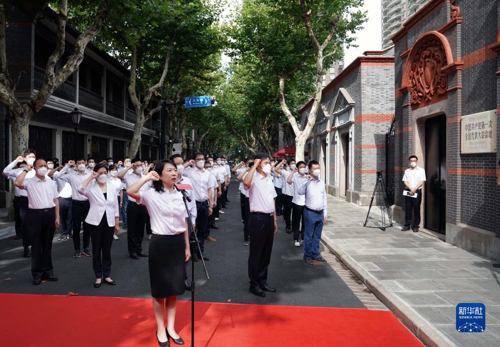 上海市新黨員代表入黨宣誓活動在中共一大會址前舉行(2022年7月1日攝)。新華社記者 劉穎 攝