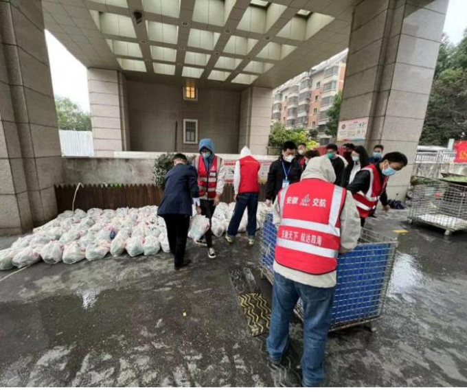 10月26日下午15時,項目部接到嘉山路街道工作人員電話,轄區內美晨雅閣小區急需人員、車輛協助發放居民生活物資。項目部第一時間組織青年志愿者前往該小區提供志愿服務,志愿者們與社區工作人員密切配合,一邊緊張有序地裝卸物資,逐個樓棟進行發放,一邊耐心地安撫居民情緒,維持現場秩序,直至晚上21時,順利完成小區一千多戶居民生活物資的發放,切實保障了群眾的正常生活。