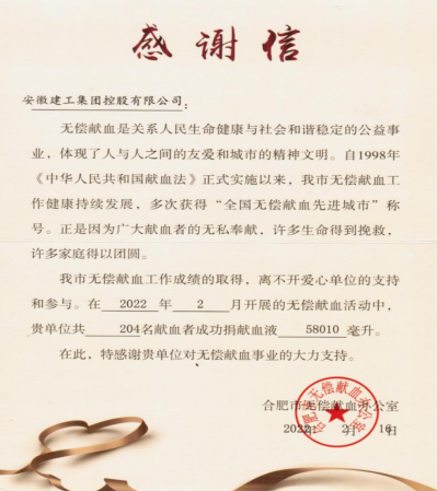 2月15日,正值元宵佳節(jié),為進一步推進“我為群眾辦實事”實踐活動走深走實,履行國企社會責任,弘揚正能量,集團積極響應合肥市中心血站號召,組織職工開展2022年無償獻血活動。