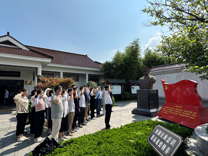 在李克農故居及生平事跡展覽館內,黨員認真聆聽講解,仔細閱讀文獻史料,深刻感受李克農將軍對黨忠誠、不怕犧牲的大無畏革命精神。在銅像前,黨員莊嚴宣誓,在鏗鏘誓言中激發奮進力量。隨后大家到巢湖半島規劃展示中心參觀學習。