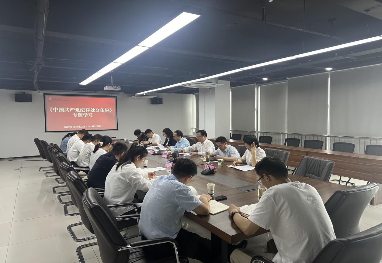 第一分公司黨支部組織黨員召開黨紀學習教育專題學習會議,分公司全體黨員以“線上+線下”的形式參會。會議落實“第一議題”制度,集體學習了習近平總書記在重慶考察時發表的重要講話精神,認真研讀了習近平總書記關于《加強文化遺產保護傳承 弘揚中華優秀傳統文化》的重要文章。隨后,在黨支部書記的帶領下,逐章逐條學習了《中國共產黨紀律處分條例》第4-6章。