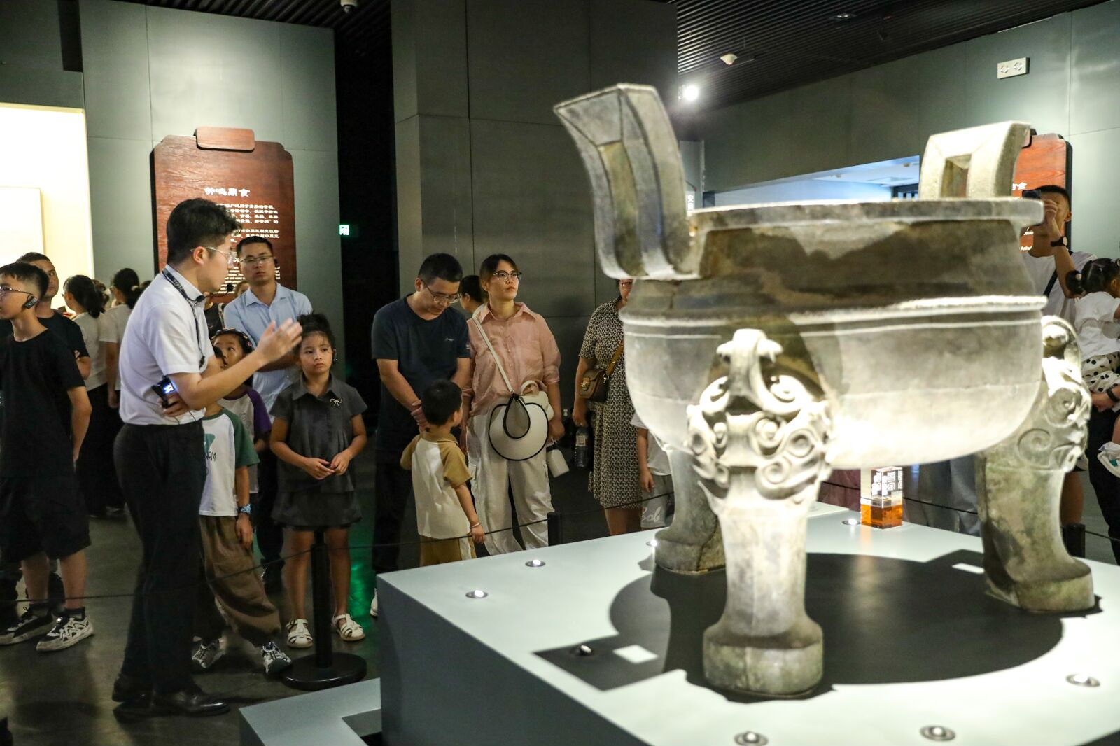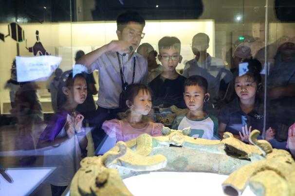 飯后,“小候鳥”們熱情不減,快樂奔赴安徽省博物院(新館)參觀,緊緊跟隨者講解員的步伐,遨游在古皖大地的歷史長河之中。商周青銅器、漢代畫像石、古代陶瓷器等一件件歷史文物、一幀幀歷史畫卷,訴說著過往的輝煌與滄桑,且館內采用高科技多媒體與游客互動,陳列的巖石標本、古生物化石令人感到震撼,充分激發(fā)了小朋友熱愛家鄉(xiāng)、探索科學的熱情。