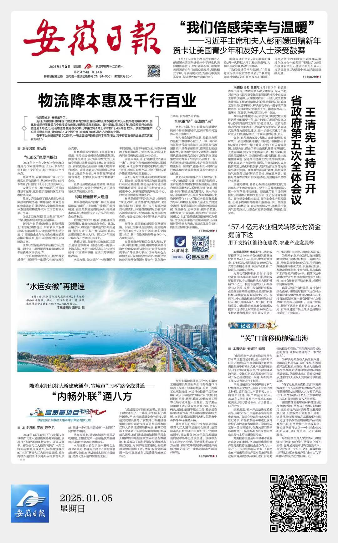 “原材料進場加上產品出貨,多的時候一天就有100多輛卡車進出,物流成本較大。”企業負責人章偉告訴記者,隨著青弋江大道建成通車,企業的貨物可以更加便捷地上高速,顯著降低物流成本、提升物流效率,同時員工上下班出行也更加順暢。