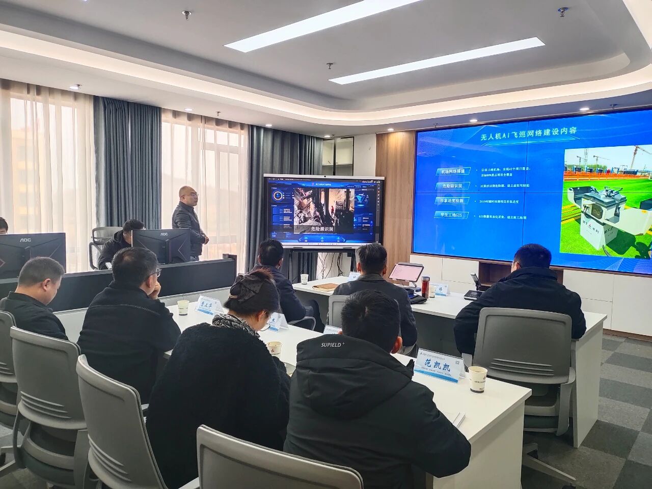 調研組現場觀摩了劉巷安置房、新一中等重點項目的無人機自動巡航、隱患智能識別與數據實時回傳演示,詳細了解系統運行機制、機場布置狀況及后續發展規劃,并與無人機管理及技術人員展開深入交流。