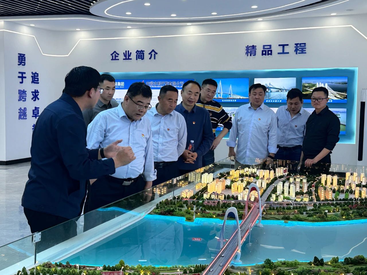 黨員同志們觀摩了延安路大橋主橋墩塔和北岸引橋施工現場,聽取了延安路大橋設計理念及建設進展情況的匯報,參觀了項目信息化中心,觀看了BIM建設和黨建視頻。隨后,在項目會議室各支部黨員就如何做好黨建引領促生產、業務工作協同提升、共享責任等方面進行座談交流。大家表示,要進一步增強黨組織之間的交流與合作,實現工作無縫對接、優勢互補,充分發揮“蚌埠市2024年度機關黨建共享陣地”作用,共同推動黨建與業務工作同頻共振、協同提升。