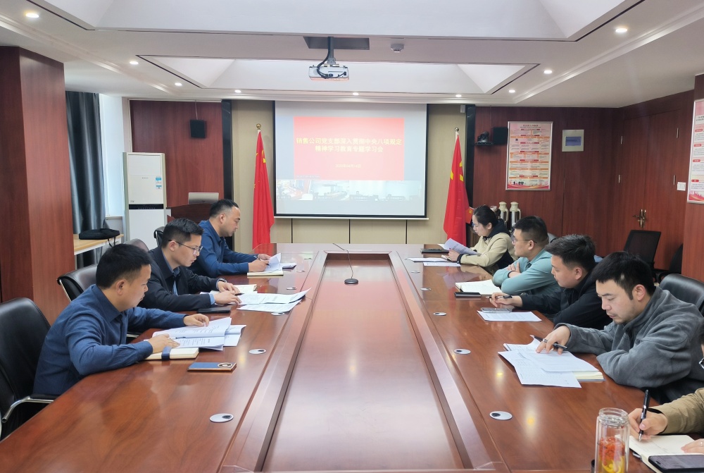 銷售公司黨支部召開深入貫徹中央八項規定精神學習教育動員部署會,傳達學習習近平總書記關于加強黨的作風建設的重要論述,中央及省委、上級黨委黨的建設工作領導小組會議和有關文件精神。會議要求,堅持聚焦主題、簡約務實,融入日常、抓在經常,一體推進學查改;要開展形式多樣的廉潔教育活動,在深學細悟中筑牢思想防線,在刀刃向內中找準問題癥結,在動真碰硬中凈化政治生態,將中央八項規定精神內化于心、外化于行,全方位推動公司在合規、高效、廉潔的軌道上穩健前行。