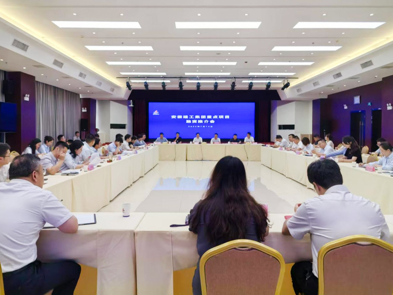 7月14日下午,集團召開重點項目融資推介會,邀請了15家金融機構公司金融部主要負責人參會,旨在深化銀企合作,推動重點項目融資落地,建工股份財務總監、董事會秘書劉強主持會議并講話。