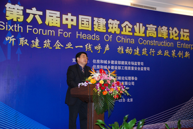 本次高峰論壇旨在聽取建筑企業一線呼聲,推動建筑行業政策創新。論壇圍繞“中國建筑業在全球金融危機背景下,如何應對日益嚴重的金融危機,如何尋找新的經濟增長點,最終實現建筑業的可持續發展”、“從建筑質量和安全角度,深入探討最低價投標及工程轉包方式、建筑資質、管理方式創新”等議題展開研討。