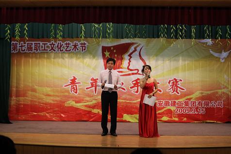 青歌賽分為歌曲演唱和企業(yè)文化知識考核兩部分。所有參賽選手的演唱作品,出自中宣部推薦的100首愛國歌曲,企業(yè)文化知識考核涵蓋建工集團企業(yè)精神、企業(yè)哲學、企業(yè)理念等內(nèi)容。比賽在集團團委制作的建國60周年紀念短片中拉開帷幕,來自所屬17個單位的27位選手相聚在建工大舞臺,用歌聲祝福偉大的祖國、偉大的黨,一曲曲膾炙人口紅色經(jīng)典歌曲唱出了建工青年對祖國母親的衷心祝福和對和諧建工科學發(fā)展的良好祝愿。經(jīng)過一番精彩比拼,省三建公司選送的《中國人》獲得一等獎,排名前10位的選手被授予建工十佳青年歌手光榮稱號。