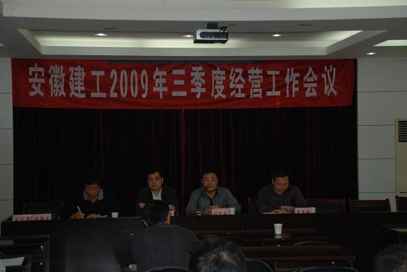 10月20日下午,安徽建工集團召開2009年三季度經營工作會議。集團公司董事長、總經理胡運成,副總經理戴良軍,所屬各單位、直屬經濟實體主要領導或分管領導、經營部門負責人等出席了會議,集團公司經營部、財務資產部、人力資源部負責人參加了會議。會議由集團經營部副主任陳傳文主持。