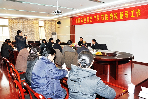 會上,王禮義校長首先對程藝廳長百忙中蒞臨學校指導工作表示感謝,并就學校近幾年的發展情況,特別是學校的辦學理念、辦學特色、培養模式以及校企聯手辦學、突出技能教育和農民工培訓工作等作了詳細的匯報。