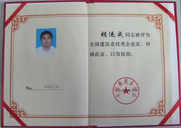 2009年12月15日,“全國建筑業先進企業、全國建筑業優秀企業家、全國優秀建造師經驗交流暨表彰大會”在北京召開。會上傳來喜訊:安徽建工集團有限公司榮獲“全國建筑業先進企業”榮譽稱號,集團公司董事長、總經理胡運成當選為“全國建筑業優秀企業家”。