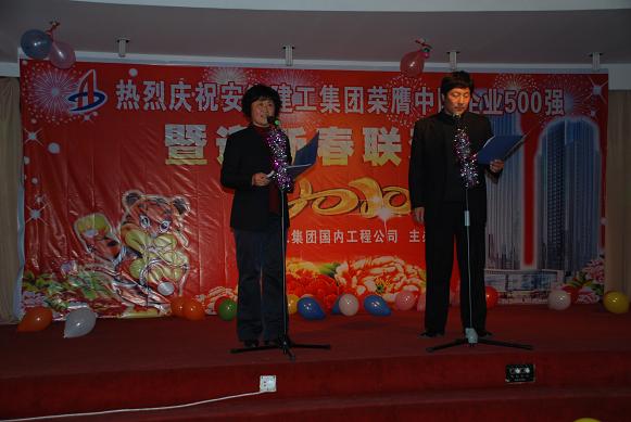 12月30日下午,由國內工程公司主辦的熱烈祝賀安徽建工集團榮膺中國企業500強暨迎新春聯歡會在學苑大廈多功能廳隆重舉行。集團公司董事長、總經理胡運成,黨委書記張海平,副董事長李長斌,副總經理戴良軍,紀委書記、工會主席劉振武,副總經理王元曦,總經理助理童宗勝、楊斌,副總會計師王曉軍,副總工程師宣善宏以及機關部門主要負責人應邀出席。國內公司全體員工參加了聯歡活動。