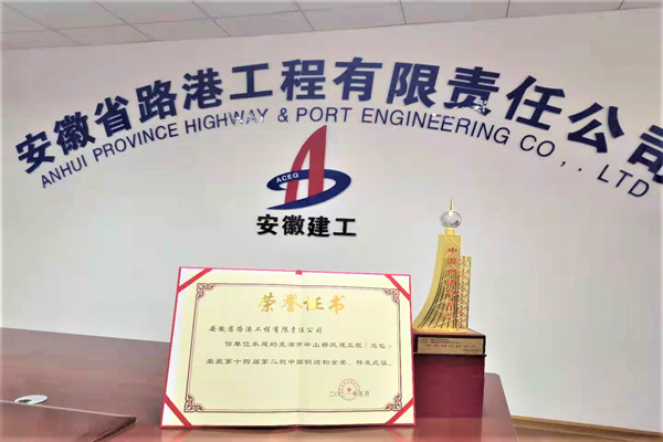 On May 29, the commendation conference for Gold Award of Chinas Construction Engineering Steel Structure was successfully held in Wuhan, the capital city of Central China’s Hubei province, where the rehabilitation construction project of Zhongshan Bridge contracted and built by Anhui Provincial Highway & Port Engineering Company Limited – one of the subsidiaries of ACEG, was awarded the second batch of the 14th Gold Award of China’s Construction Engineering Steel Structure and the honor - Project manager award for outstanding contribution was conferred on the Project manager.