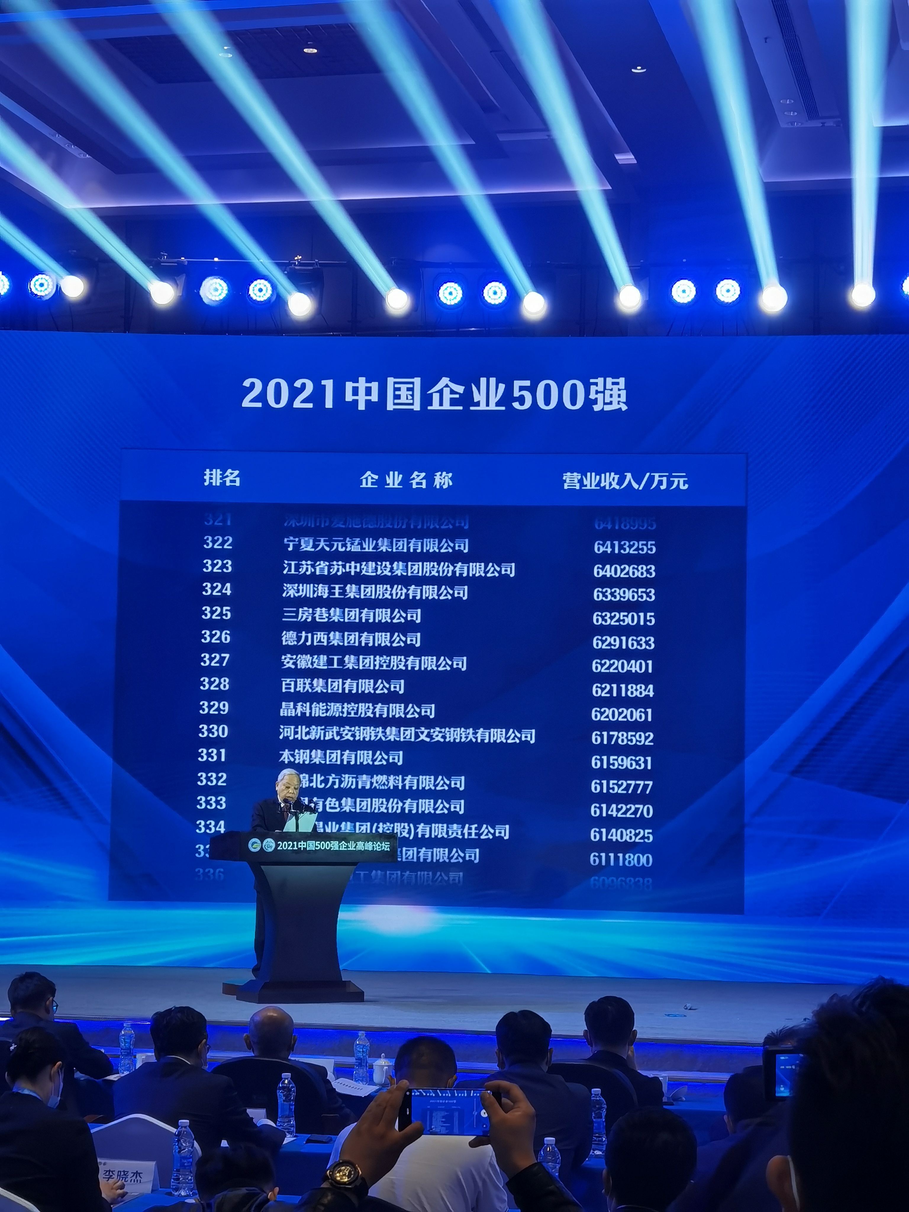 September 25 / CHANGCHUN - China Enterprise Confederation and China Enterprise Entrepreneurs Association jointly released the List of Chinas Top 500 Enterprises for the 20th time in a row at the 2021 Chinas Top 500 Enterprises Summit on Saturday and ACEG ranks the 327th with the operating revenue of RMB¥62.204 Billion, up 31positions compared with last year.